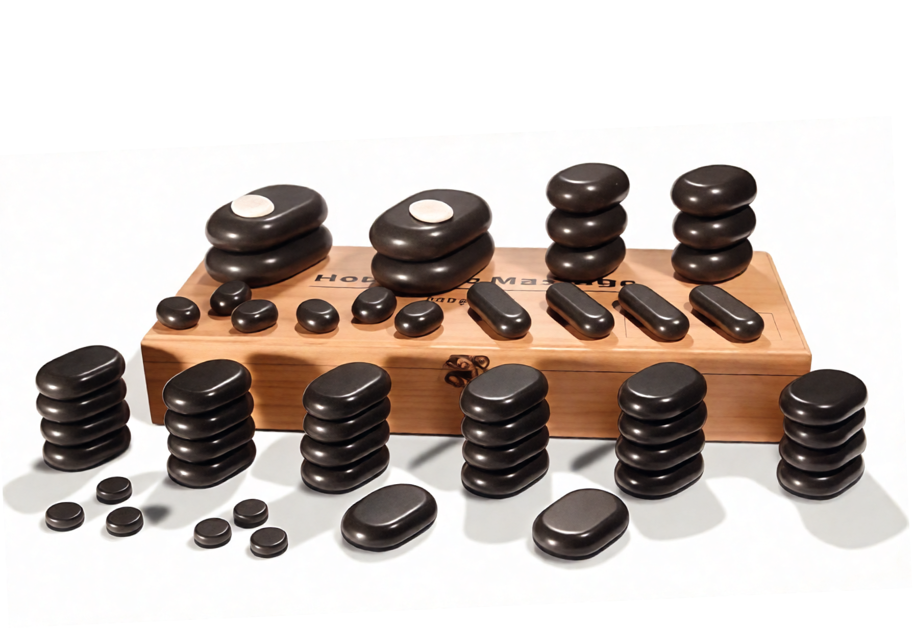 Набор массажных камней для стоун терапии из базальта Хитэк 54 шт.