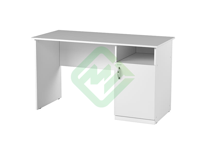 • Стол с тумбой изготовлен из ЛДСП 16 мм белого цвета с кромкой ПВХ 0,45 мм, фасад — с кромкой 2 мм