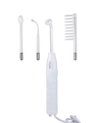 Современный портативный прибор Дарсонваль Biolift4 118 (PRO) Gezatone - аппарат для терапевтического воздействия слабым импульсным током высокого напряжения и частоты, с возможностью регулировки уровня интенсивности. Оснащен 4 стеклянными электродами для проведения процедур  по лицу и по телу: “грибок”, “лепесток”, “капля”, “расческа”.