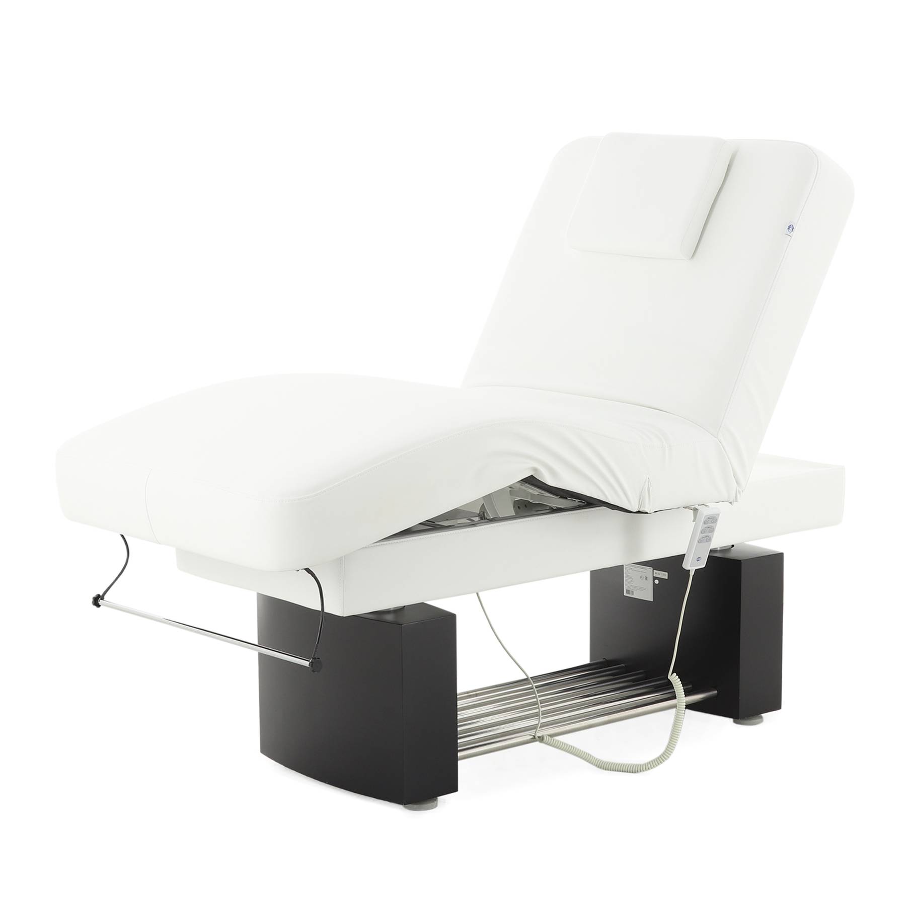 Ложе выполнено из упругого и мягкого пенополиуретана толщиной 14 см, материал прекрасно адаптируется к форме тела клиента. Поверхность стола обита экокожей винил-люкс – универсальным покрытием, которое легко моется и очищается от загрязнений.