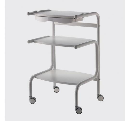 Столик TRYLLO – это удобный и функциональный передвижной столик. Имеет окрашенный трубчатый каркас. Комплектуется 3 полками, ящиком, расположенным под верхней полкой, и суппортом для крепления лампы-лупы. Отличается мягким дизайном, прочностью и легкостью управления. TRYLLO представляет собой идеальное решение для косметологических, педикюрных кабинетов, центров отдыха, салонов красоты и СПА.