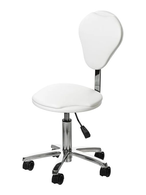 Стул мастера С-10 низкий, на колесиках, со спинкой, белый, хром