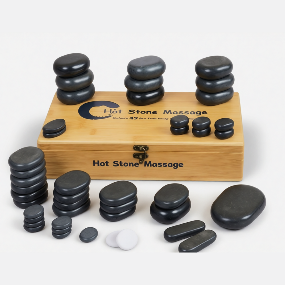 Набор из 45 камней разного размера идеально подойдет профессионалам, работающим в массажном салоне. Стоун-терапию можно проводить и дома, однако, для этого необходимо проконсультироваться со специалистом! В процессе массажа такого рода используются черные горячие базальтовые камни, которые располагаются на теле. Камни опускают в теплую воду и нагревают до температуры примерно в 60°C. Затем следует их расположить на теле в тех зонах, где мышцы наиболее напряжены, и клиент может наслаждаться приятным теплом и расслаблением!
