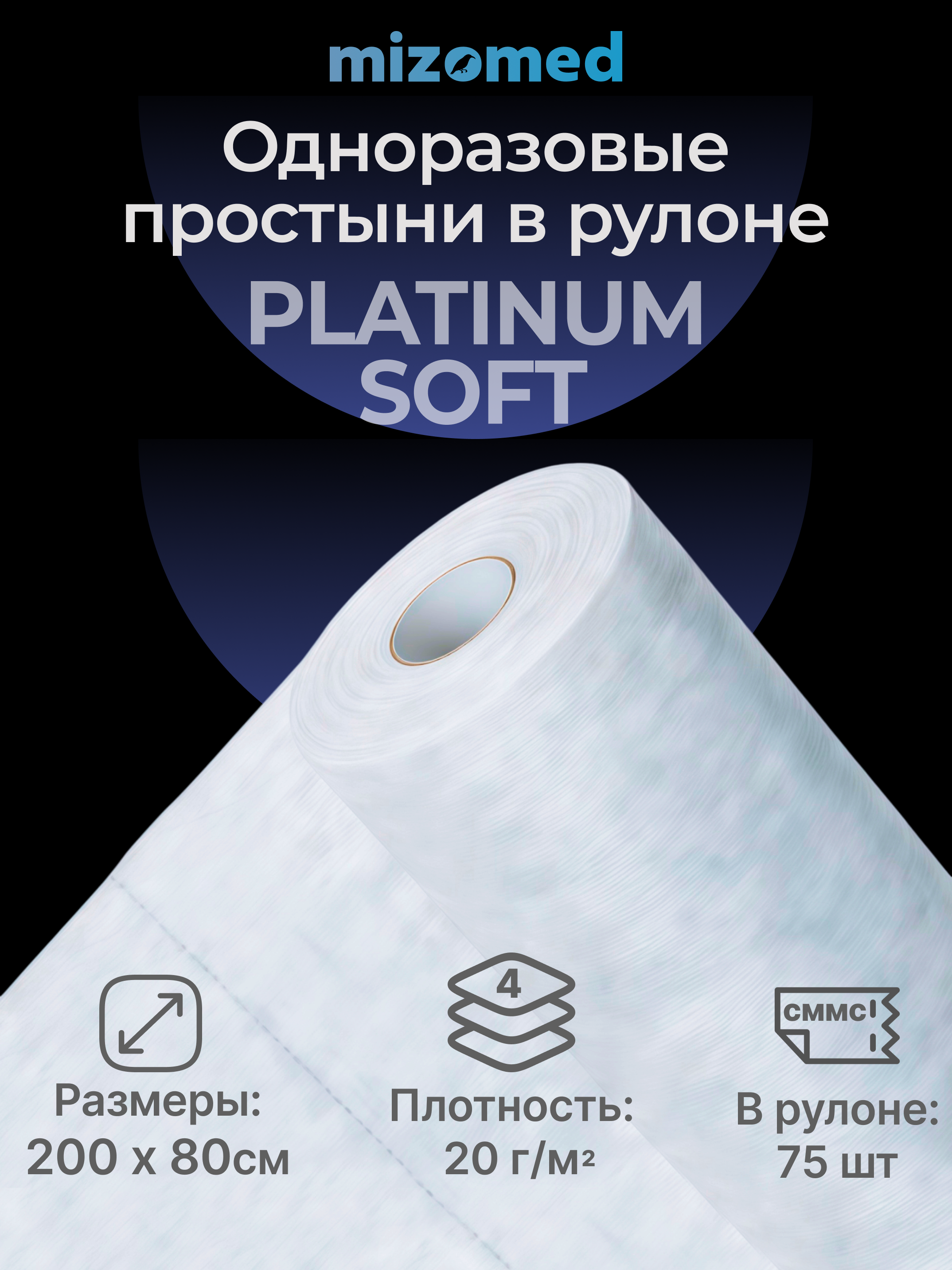 Одноразовые простыни в рулоне PLATINUM SOFT, 200x80 см, 20 г/кв.м, 75 шт.