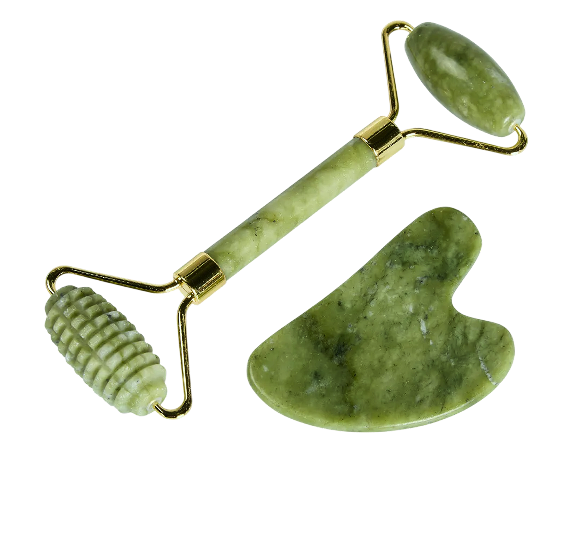 Массажный набор гуаша: роллер (ролик) и скребок для лица нефритовые Mizomed Dual Serenity R (M21TC)