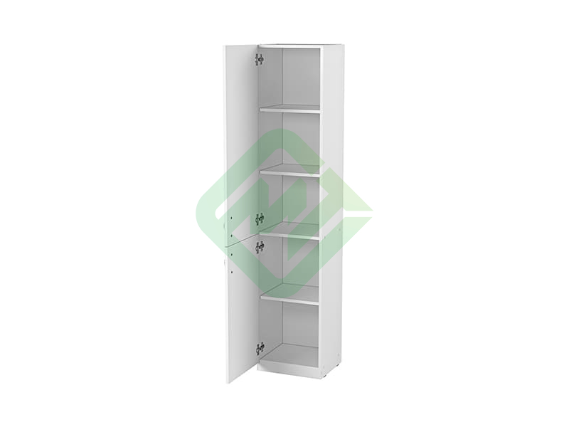 • Шкаф одностворчатый, имеет 2 отделения: верхнее — 2 съемные полки, нижнее — 1 съемная полка, каждое отделение закрывается дверкой из ЛДСП