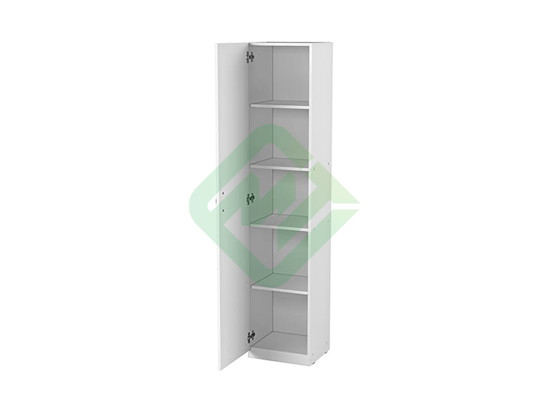 • Шкаф одностворчатый, имеет 3 съемные и 1 несъемную полки из ЛДСП, выдерживающих нагрузку до 15 кг
