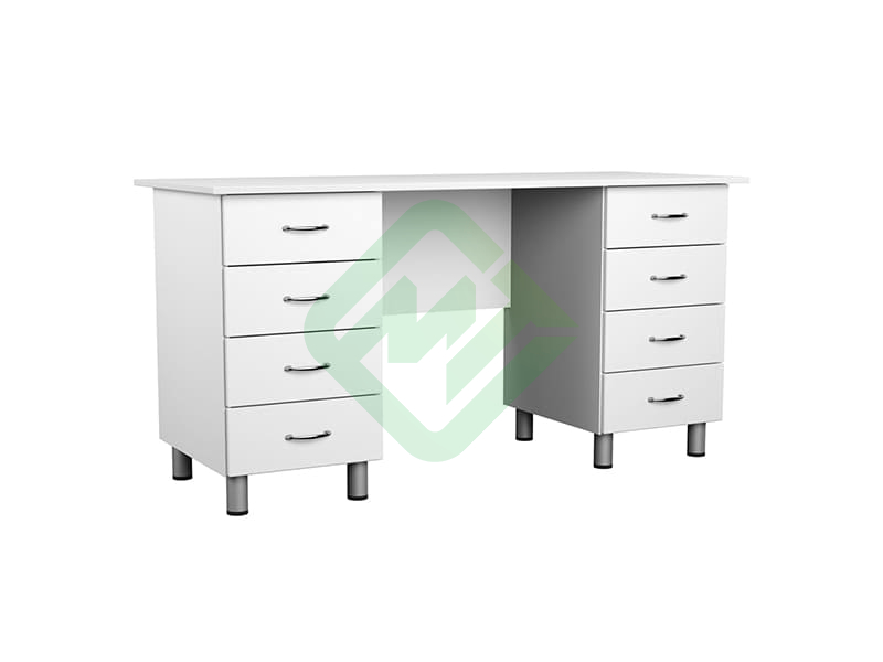 • Стол имеет две тумбы, каждая с 4-мя выдвижными ящиками на роликовых направляющих с нагрузкой до 5 кг
