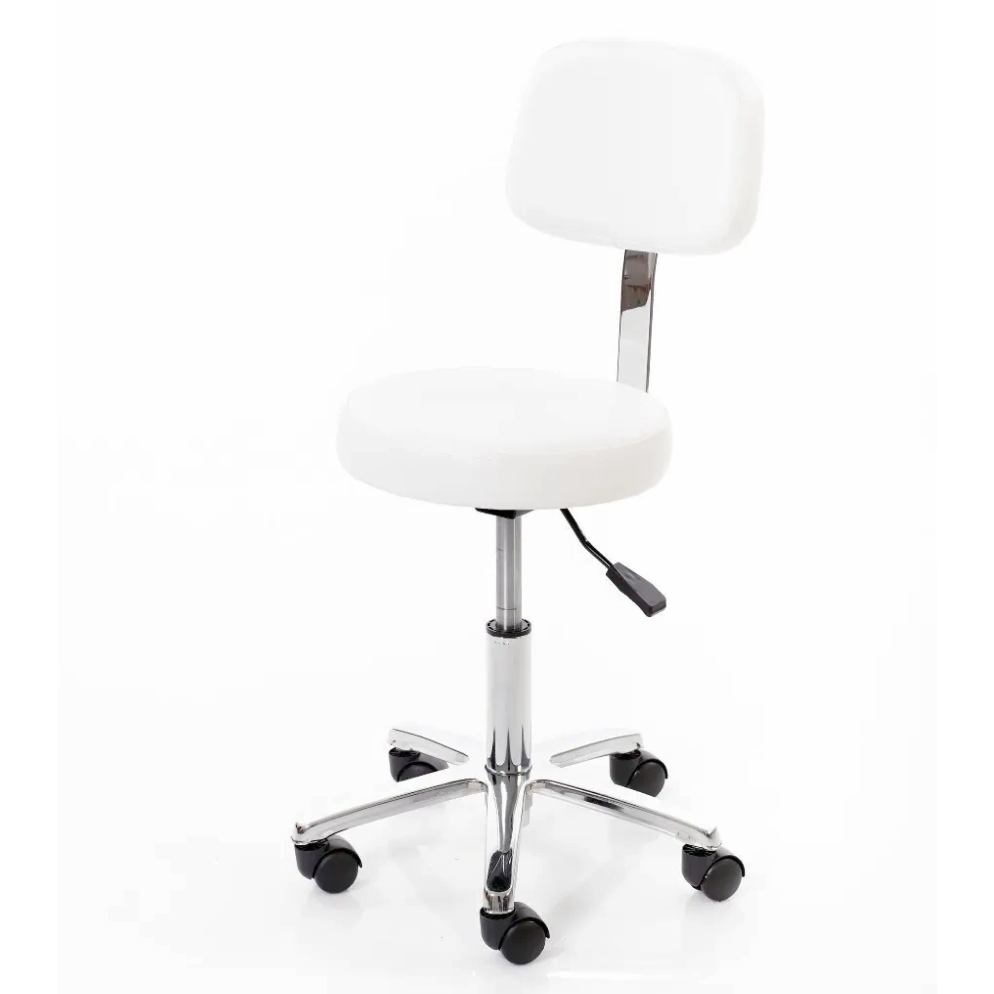 Стул мастера ПРИЗМА высокий, на колесиках, со спинкой, белый