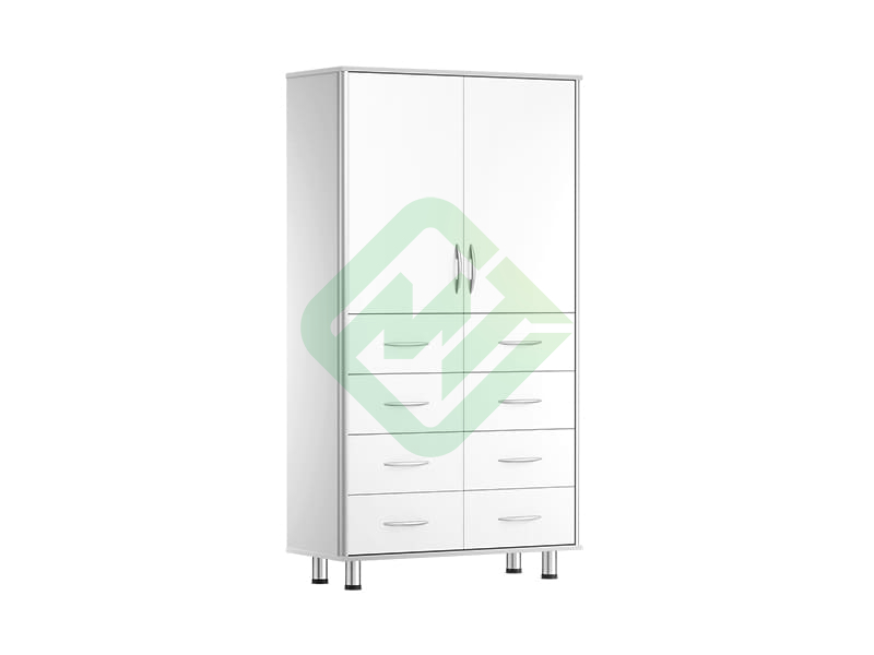 • Шкаф выполнен из ЛДСП 16 мм белого цвета с кромкой 0,45 мм, передние стойки — из анодированного алюминиевого профиля