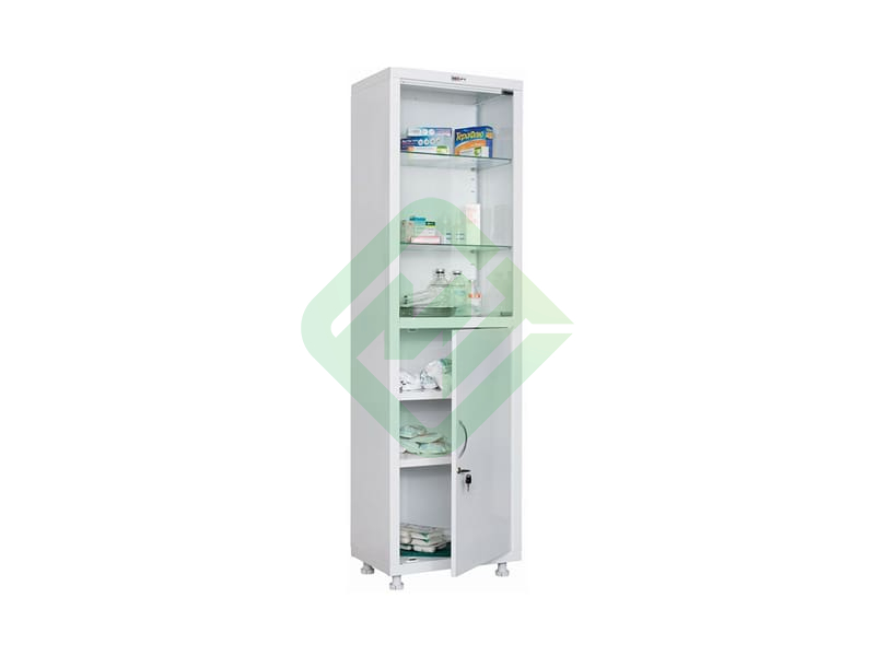 • Шкаф медицинский металлический Промет МД 1 1657/SG предназначен для хранения лекарственных препаратов, медицинского инвентаря и других вещей в лечебно-профилактических и муниципальных учреждениях