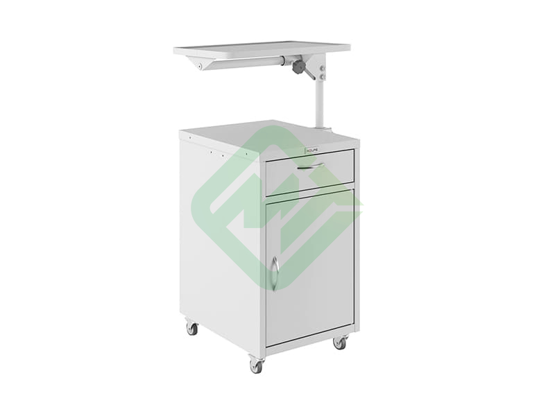• Имеет ящик и отделение с дверкой и полкой, а также поворотный прикроватный столик, который помогает больному с постельным режимом принимать пищу, читать, разместить ноутбук для работы